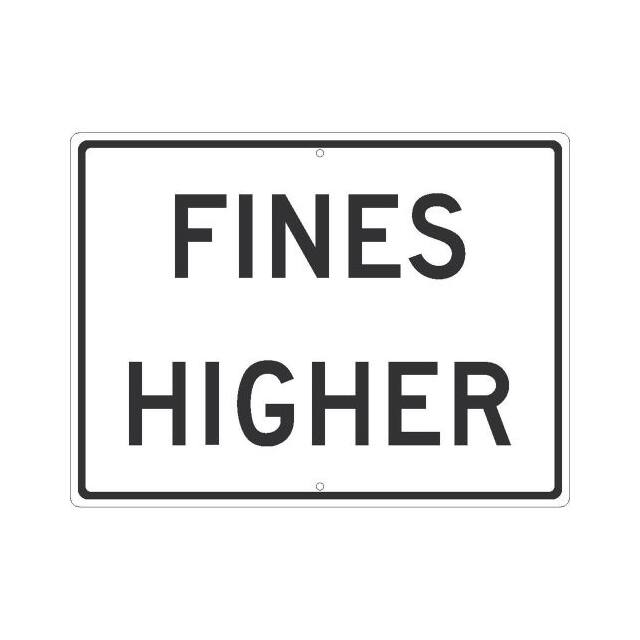 TRAFFIC SIGN, FINES HIGHER, 18X2
